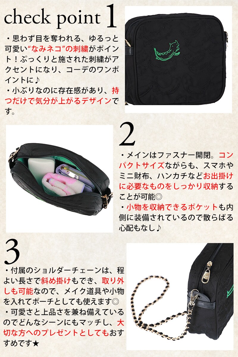 | 商品 | なみネコししゅう ショルダーバッグ | ||