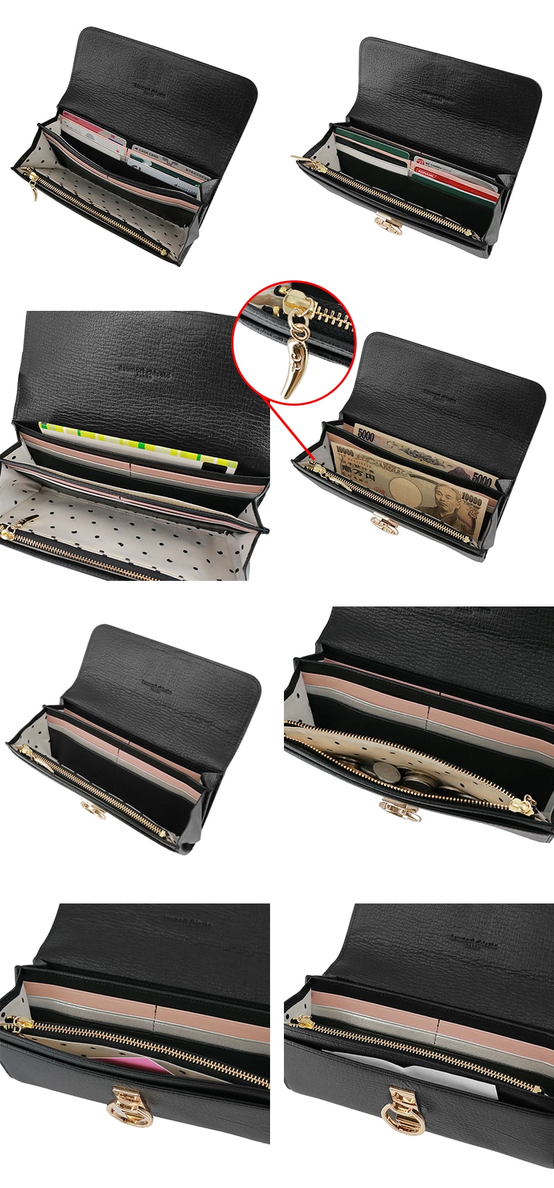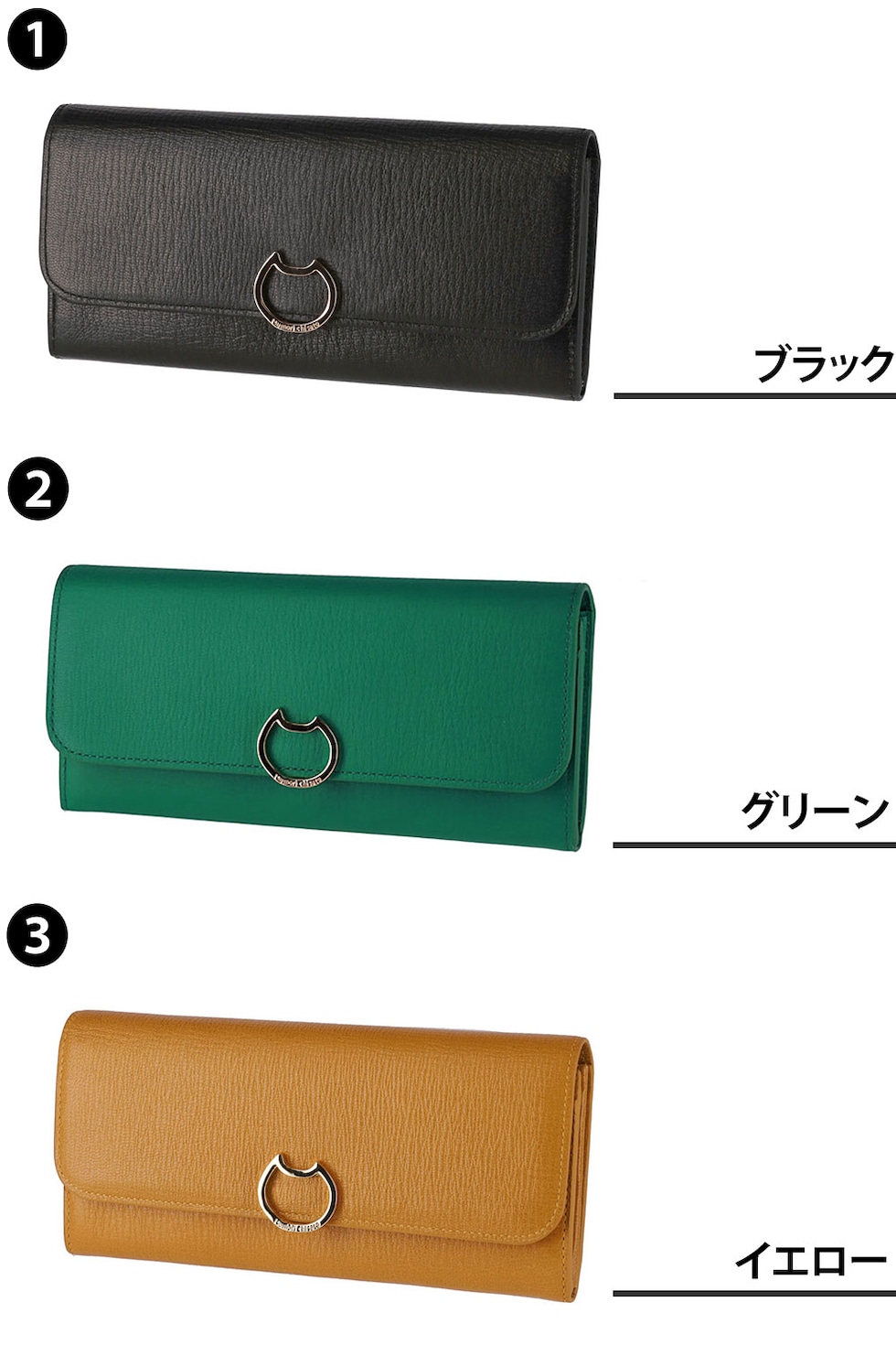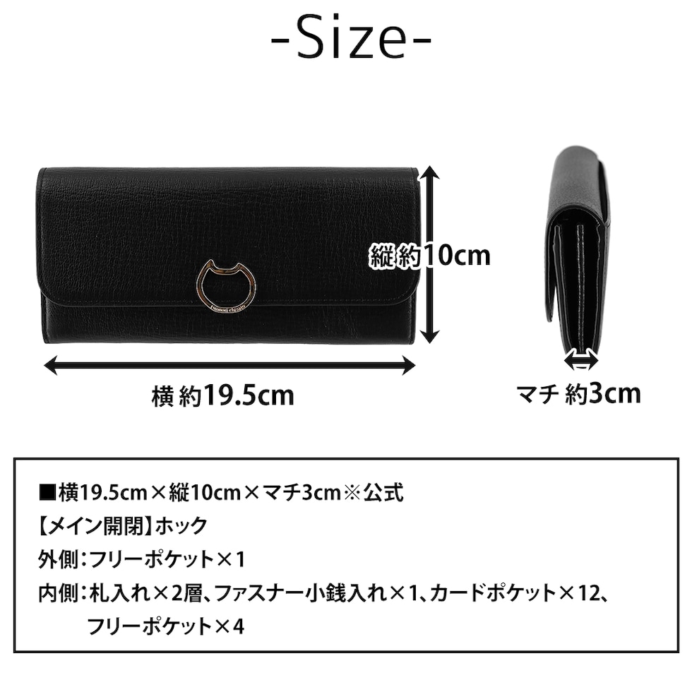 ネコのクリップ金具が上品なアクセントになった、かぶせタイプの長財布。