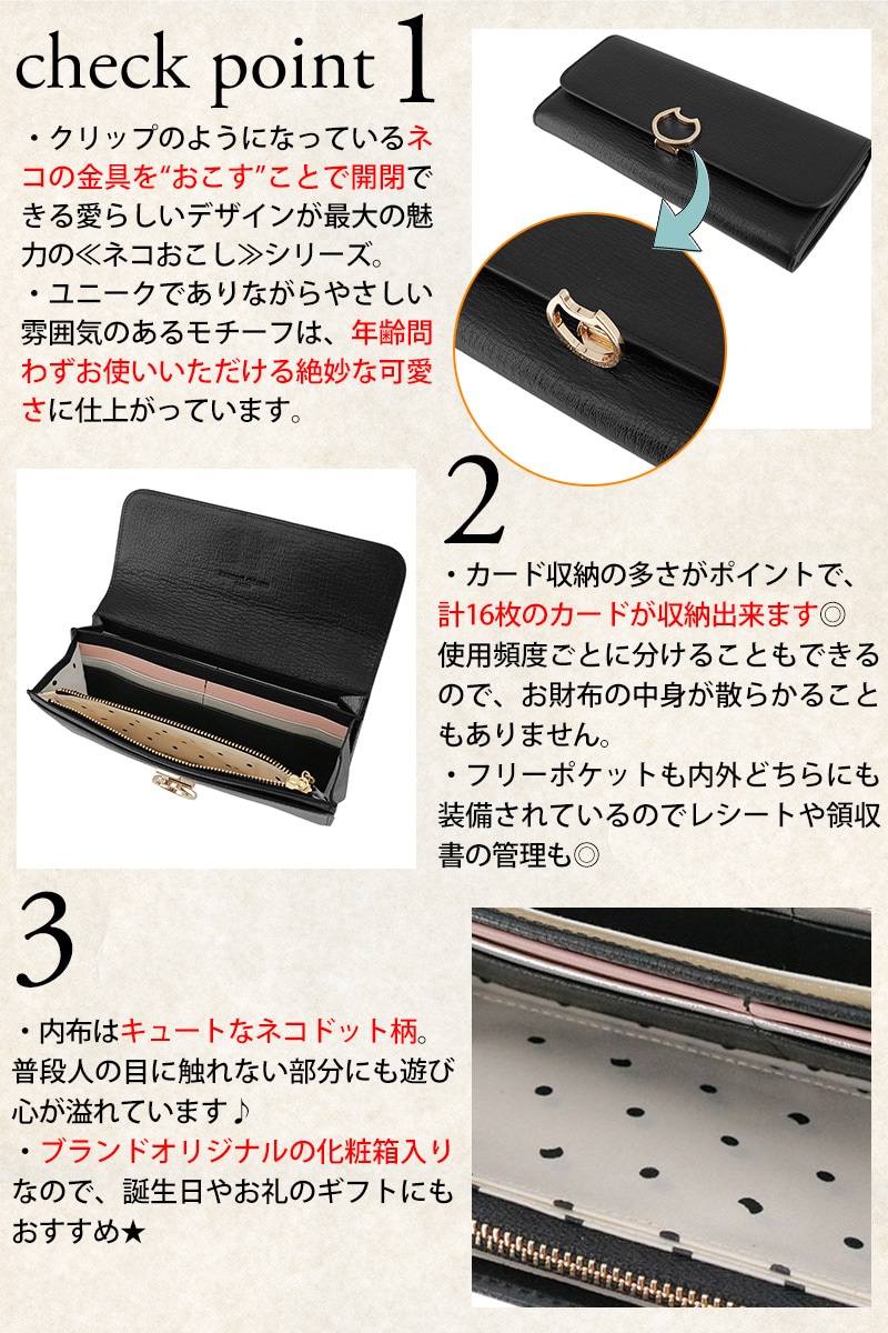 | 商品 | ネコおこし かぶせ長財布 | ||
