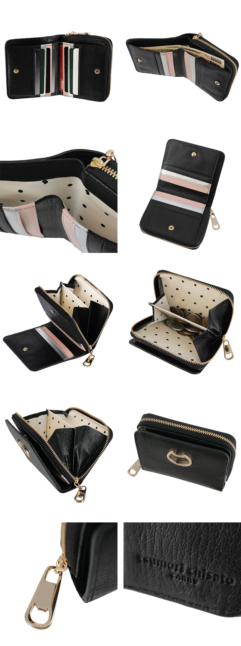 小銭入れはササマチ付きのラウンドファスナー仕様で仕切りのある2層構造。硬貨が見渡しやすく会計もスムーズに♪