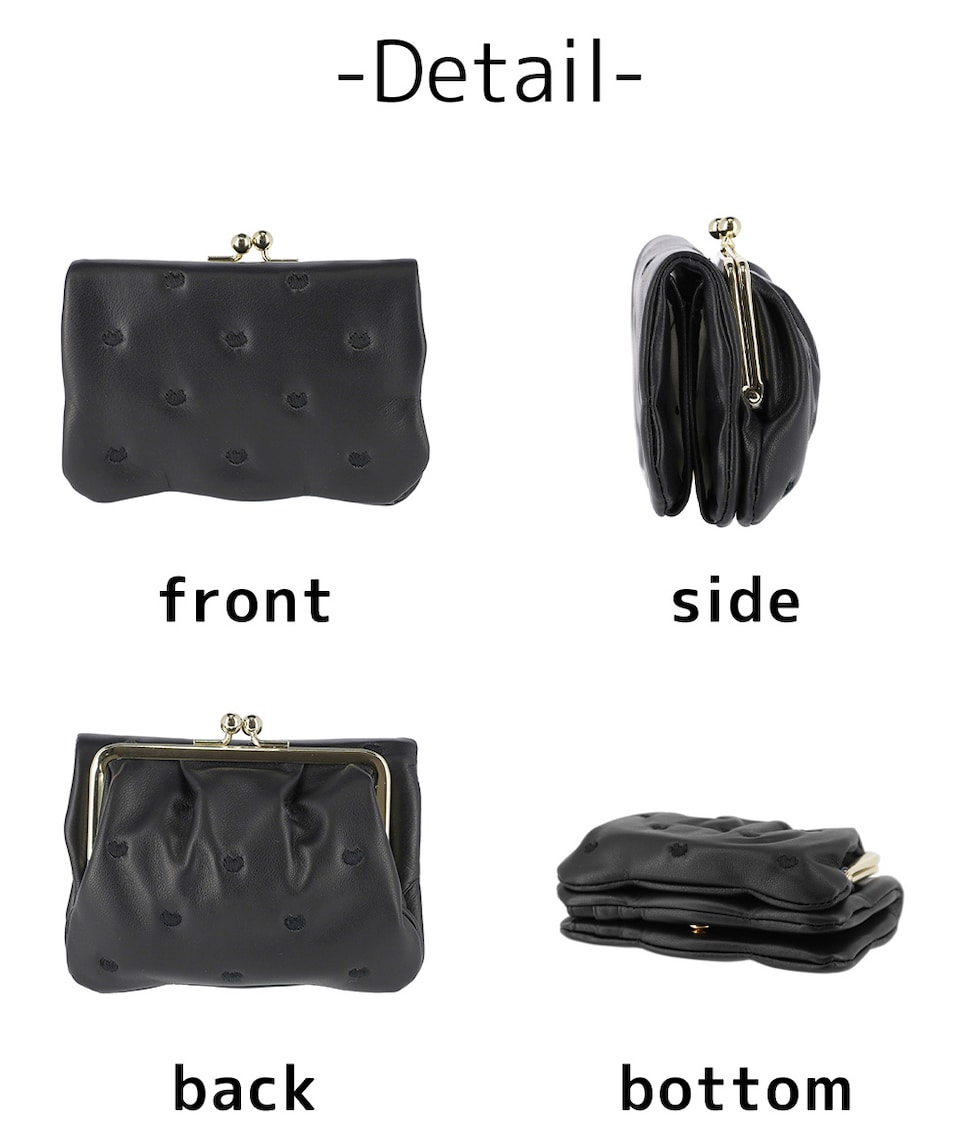 女性に人気のがま口小銭入れを採用しており、紙幣や硬貨、カード等一通りのものは入る実用性の高さもポイントです♪