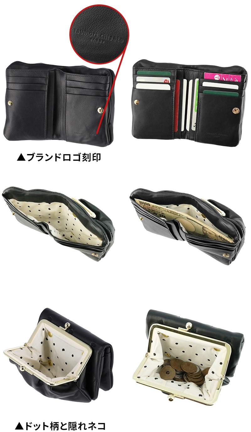 ツモリチサト 財布 二つ折り財布 折財布 がま口財布 小銭入れあり tsumori chisato ぷちネコ 57886 レディース 本革 日本製 小さめ 誕生日プレゼント ギフト 【正規代理店】 2.グリーン -07ラッピング可能