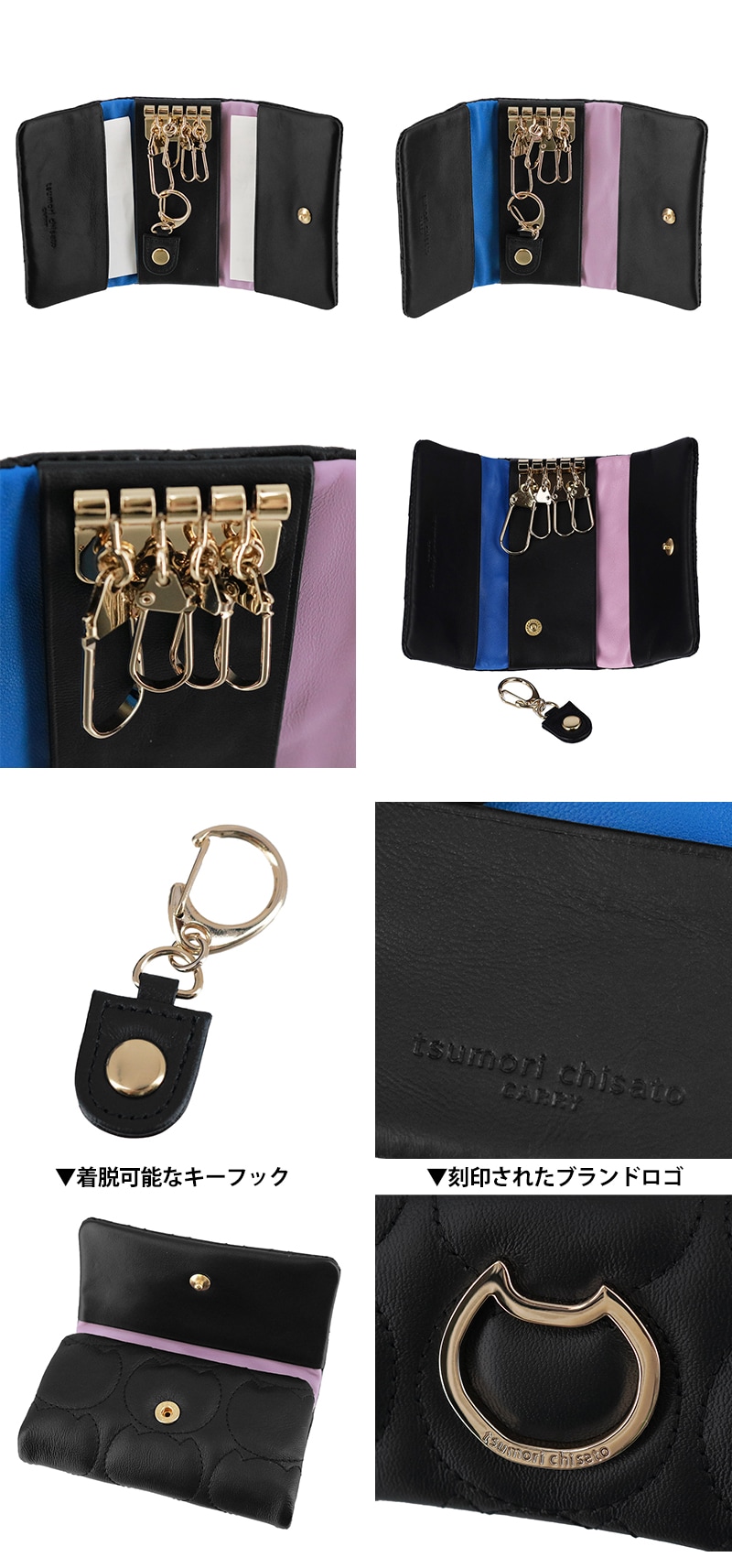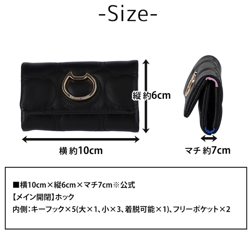 ツモリチサト 小物 キーケース 本革 かぶせホック tsumori chisato ラインネコ 57905 レディース 薄い スリム 送料無料 誕生日プレゼント ギフト ラッピング可能 【正規代理店】 1.ブラック -01