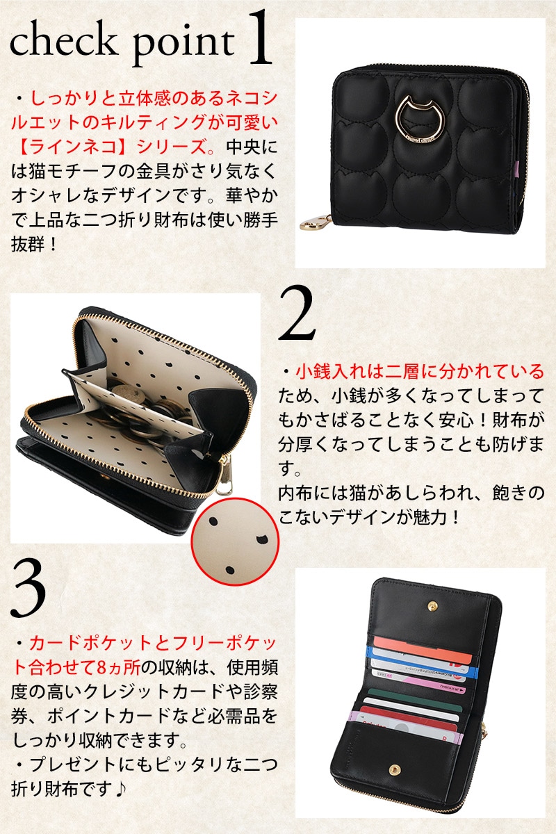 | 備考 | 【メイン開閉】ホック 外側/ ラウンドファスナー小銭入れ×2層 内側/ 札入れ×1 カードポケット×6 フリーポケット×2 キーワード : 10代 20代 30代 入学祝い 進学 卒業祝い 就職祝い 誕生日 記念日 自分用 仕事 買い物 ショッピング OL キレカジ カジュアル ガーリー エレガント キルティング風 パープル バイオレット ネコ 猫 クラフト Wallet パープル プレゼント ギフト ラッピング ラッピング可能 贈り物 ご褒美 サプライズ 感謝 母 娘 姉妹 彼女 恋人 友達 大切 メンズ レディース 女性 通勤 通学 ビジネス 学生 ブランド ポイント消化 ニューバッグワカマツ ニューバックワカマツ | ||