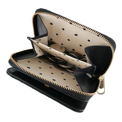 ラウンド開閉+二層構造の小銭入れは、視認性が高く硬貨を種類ごとに分けて収納可能。