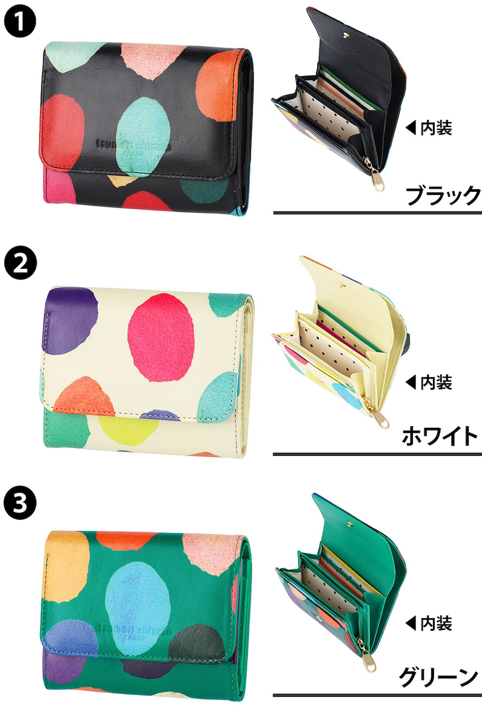 ツモリチサト 財布 二つ折り財布 折財布 ミニ財布 tsumori chisato カラフルズームドット 57951 レディース 本革 日本製 小さめ 送料無料 誕生日プレゼント ギフト ラッピング可能 正規代理店 1.ブラック -01