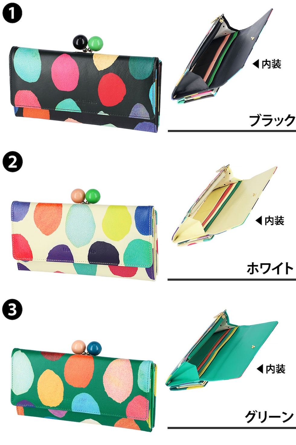 | 商品 | カラフルズームドット がま口長財布 | ||