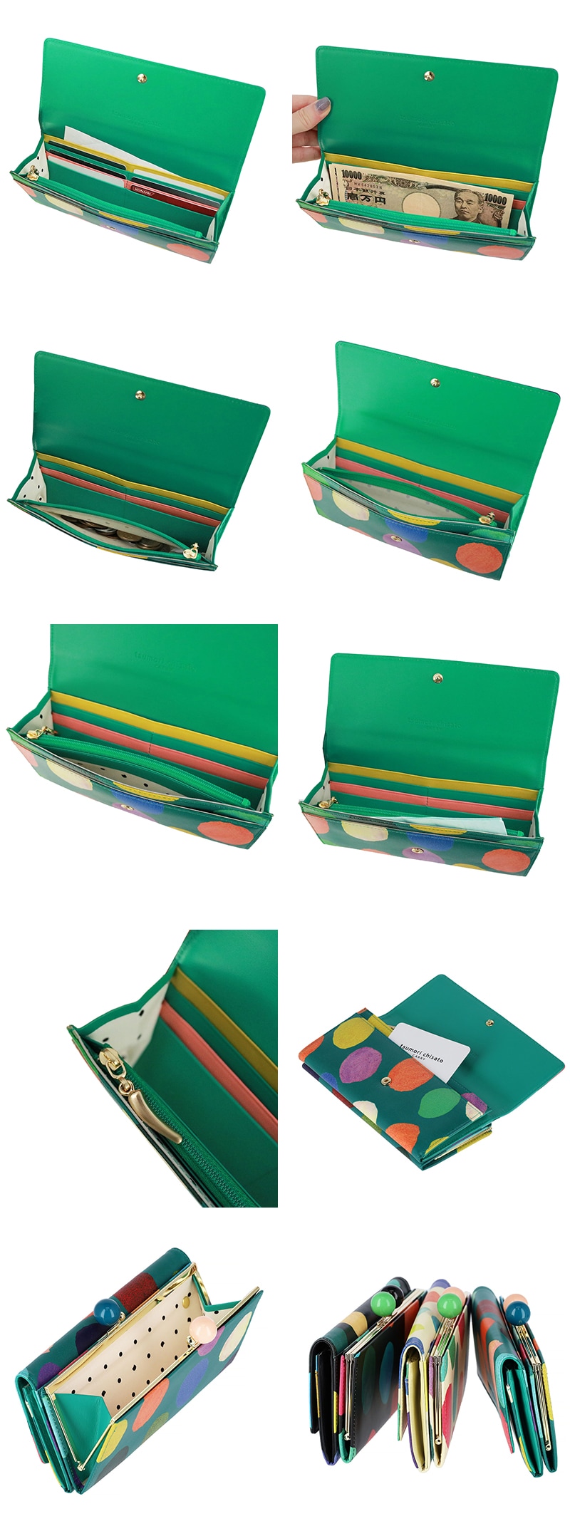 ツモリチサト 財布 長財布 がま口財布 大容量 tsumori chisato カラフルズームドット 57953 レディース 本革 日本製 薄い 送料無料 誕生日プレゼント ギフト ラッピング可能 正規代理店 3.グリーン -07