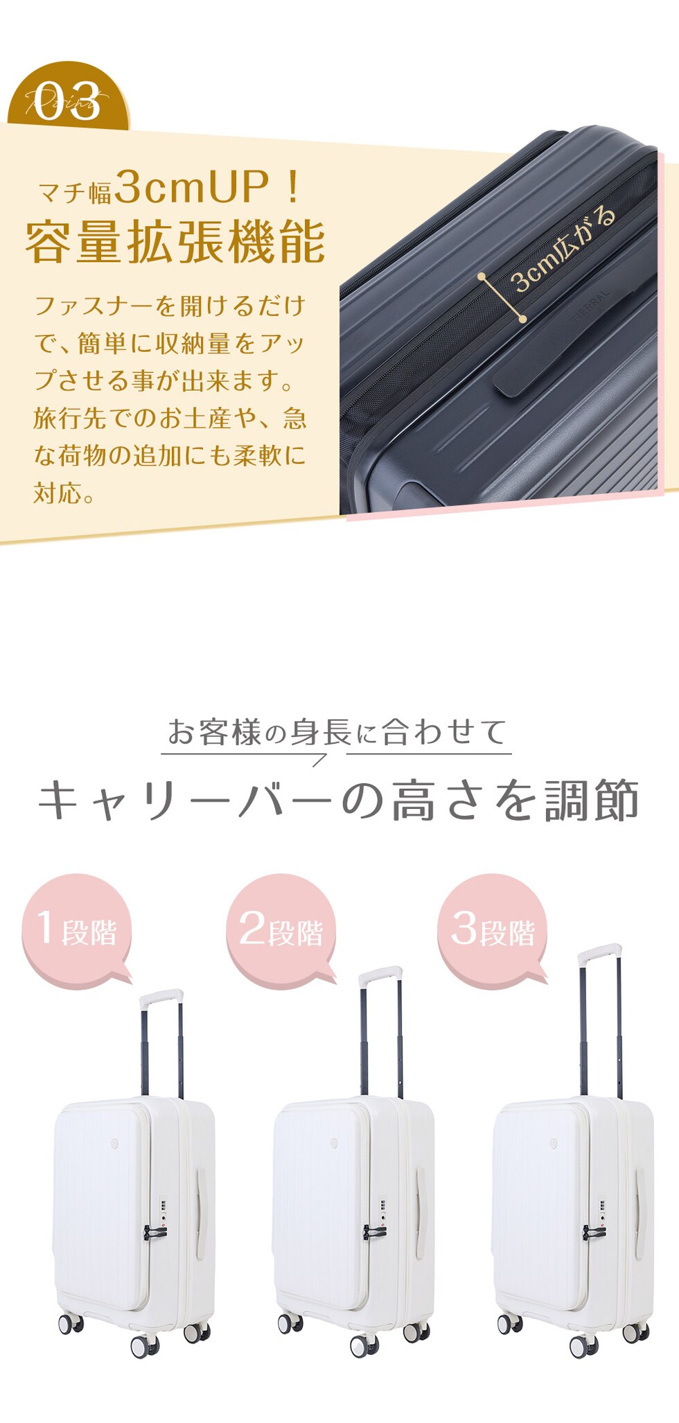 キーワード: 走行音が静か TTMR2*004 旅行鞄 旅行バッグ 中型 軽量 大容量 50L 55L 60L 容量拡張 黒色 白色 パステル かわいい 可愛い おしゃれ お洒落 かっこいい おすすめ オススメ シンプル 高級 ブランド ハードケース ハードタイプ ファスナータイプ ジッパータイプ 4輪 ダブルキャスター フロントポケット フロントオープン PC収納 ノートPC ノートパソコン タブレット収納 旅行 修学旅行 国内旅行 海外旅行 TSロック 1泊 2泊 3泊 4泊 5泊 ビジネス 出張 メンズ 男性 彼氏 レディース 女性 妻 プレゼント ギフトニューバッグワカマツ ニューバックワカマツ