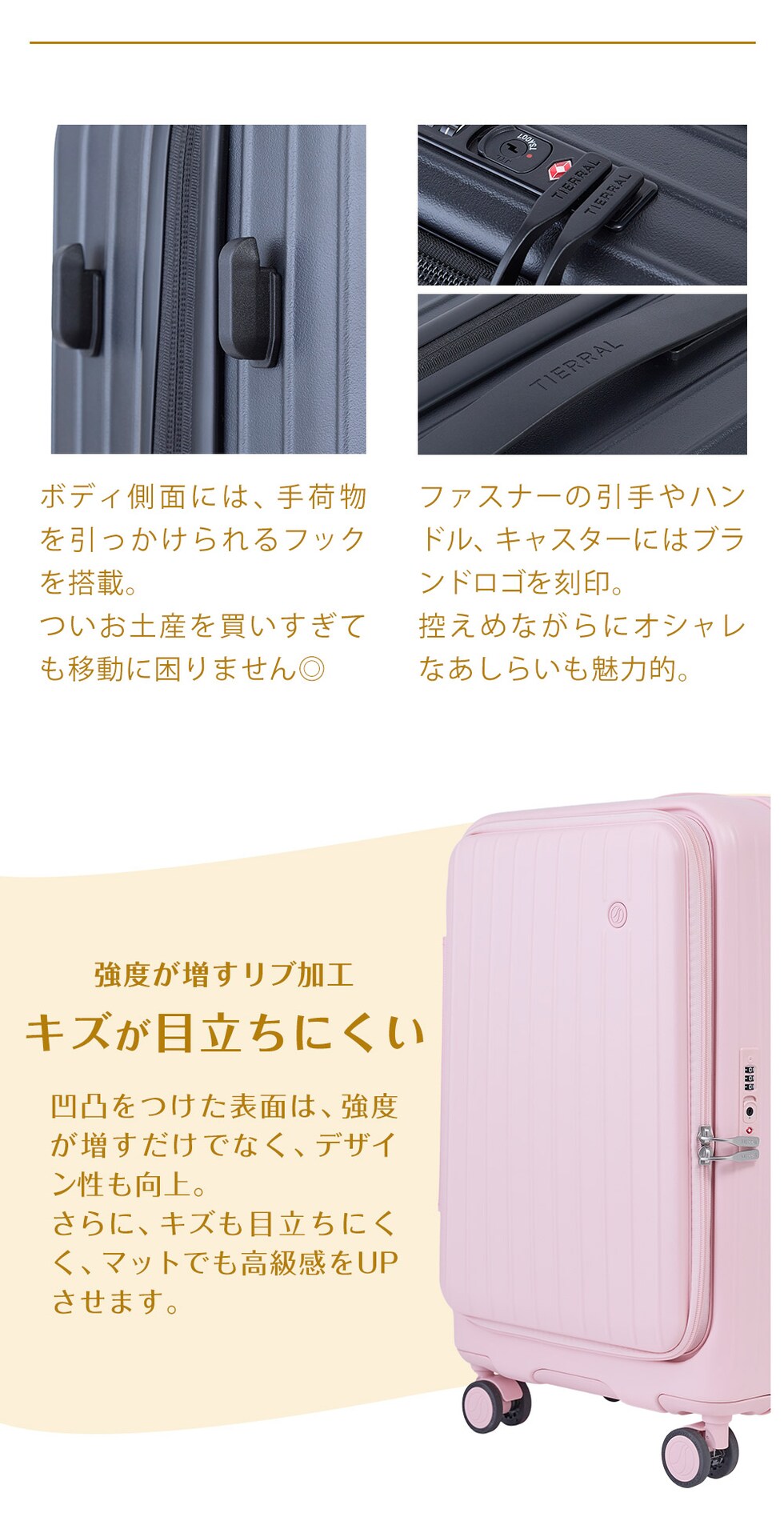 ティエラル スーツケース キャリー ハード ビジネス TIERRAL TOMARU 2.0 53~61L 中型 S+サイズ 3~5泊 フロントオープン 旅行かばん エキスパンダブル メンズ レディース プレゼント ギフト 1.ブラック -09ラッピング可能
