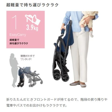 超軽量3.9kgの1カ月から3歳頃まで使える両対面・A形ベビーカー。