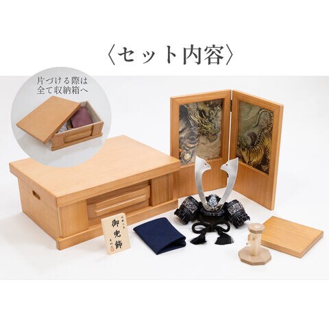 従来の人形と比べて飾りつけ時もコンパクト、片づけしたあとも収納できる五月人形だから、場所に困りません。