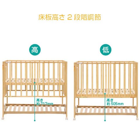 また、赤ちゃんの成長に合わせて床板が2段階調節できます!