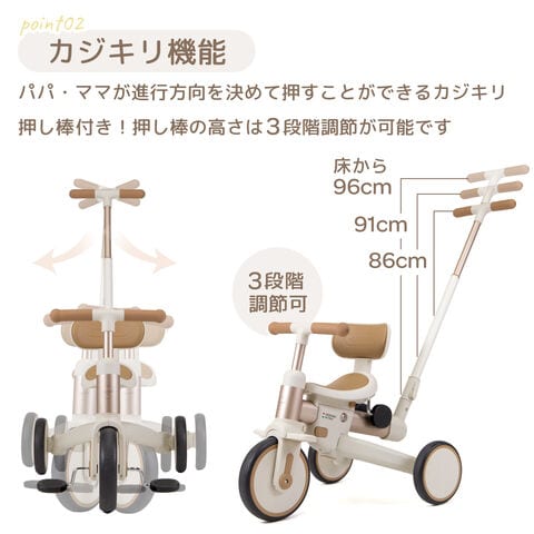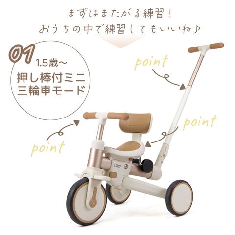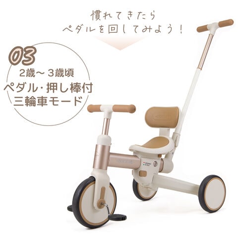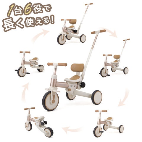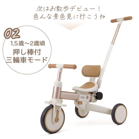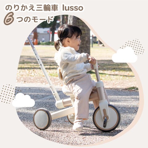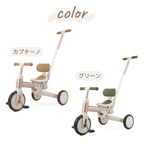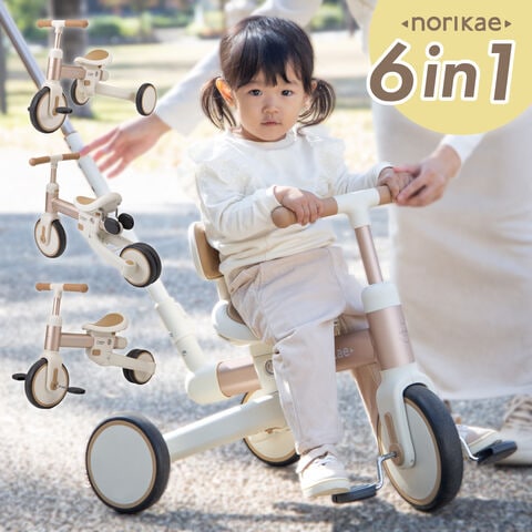 のりかえ三輪車 押し棒付き のりかえ三輪車lusso 背もたれ付き 6WAY 三輪車 自転車 バランスバイク キッズバイク 1.5歳 2歳 3歳 4歳 ヤトミ ベージュ ピンク グリーン 変身 【ラッピング不可】