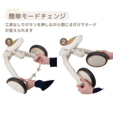1.5歳~、1.5歳~2歳、2歳~3歳、3歳~、4~5歳未満と、 お子様の成長にあわせて6段階のパーツチェンジで 長くご使用いただけます