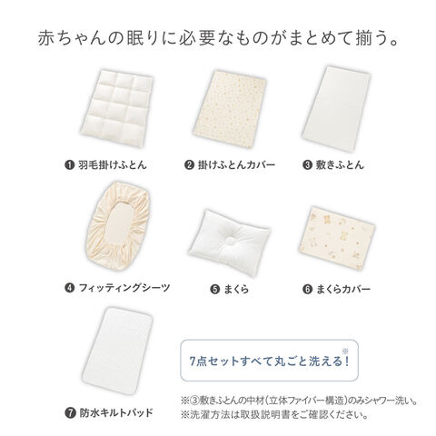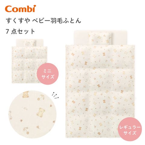 【10月21日入荷予定】 コンビ すくすや ベビー羽毛ふとん7点セット レギュラーサイズ ミニサイズ 布団 敷き布団 ベビー布団セット ベビー布団 軽い 洗える ベッド 出産祝 お祝い 赤ちゃん 【118629】【118644】