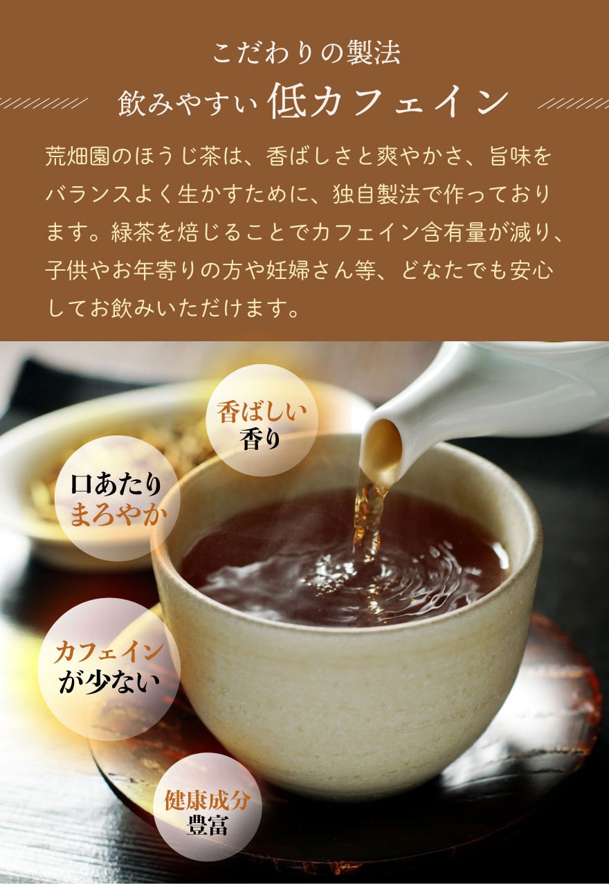 荒畑園のほうじ茶は香ばしい香りとやさしい味わい、旨味のバランスがバツグン。