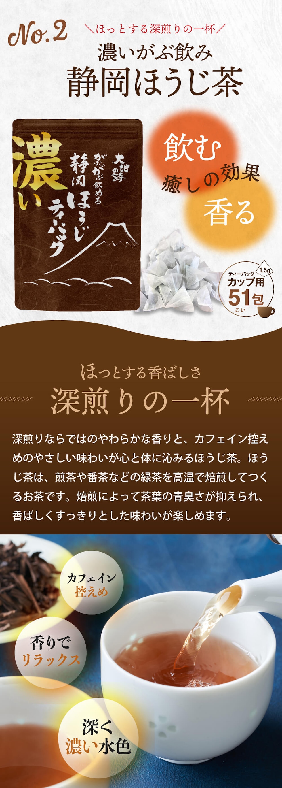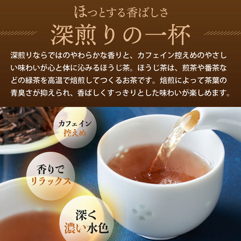 ほっとする深煎りの一杯。深みのあるほうじ茶ティーバッグ