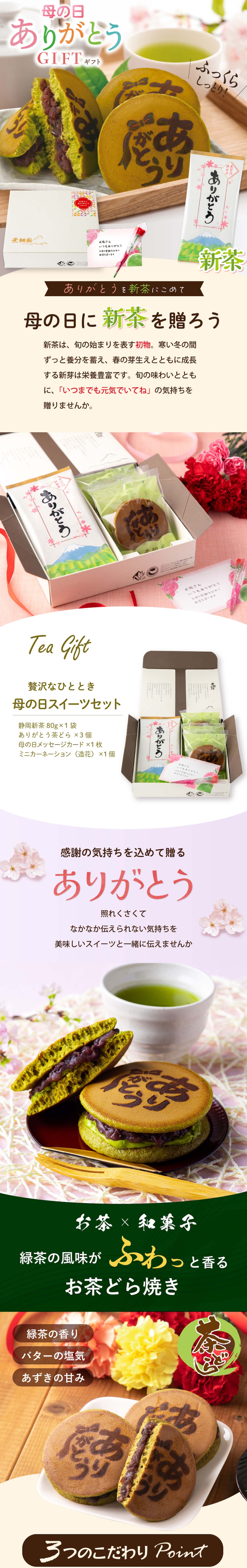 母の日 2025 お茶 緑茶 スイーツ プレゼント 静岡新茶&ありがとう茶どら3個セット ※5/6頃より順次発送