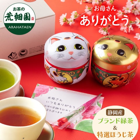 母の日 プレゼント お茶 緑茶 茶葉 プレゼント ギフト 招き猫缶2本箱入(静岡緑茶&ほうじ茶) ※5/6頃より順次発送 ■13654
