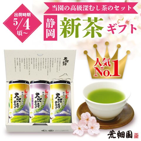 新茶 静岡茶 茶葉 深蒸し茶 極上・初摘・大地の旬 3本箱入 ※出荷時期5/4頃~