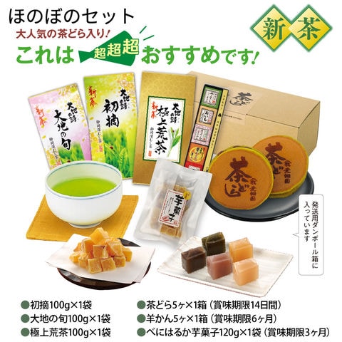 当園自慢のお茶の数々を是非ご賞味ください。お茶菓子好きな人におすすめのセットです。 大人気の茶どら入り!これは超超超おすすめです!