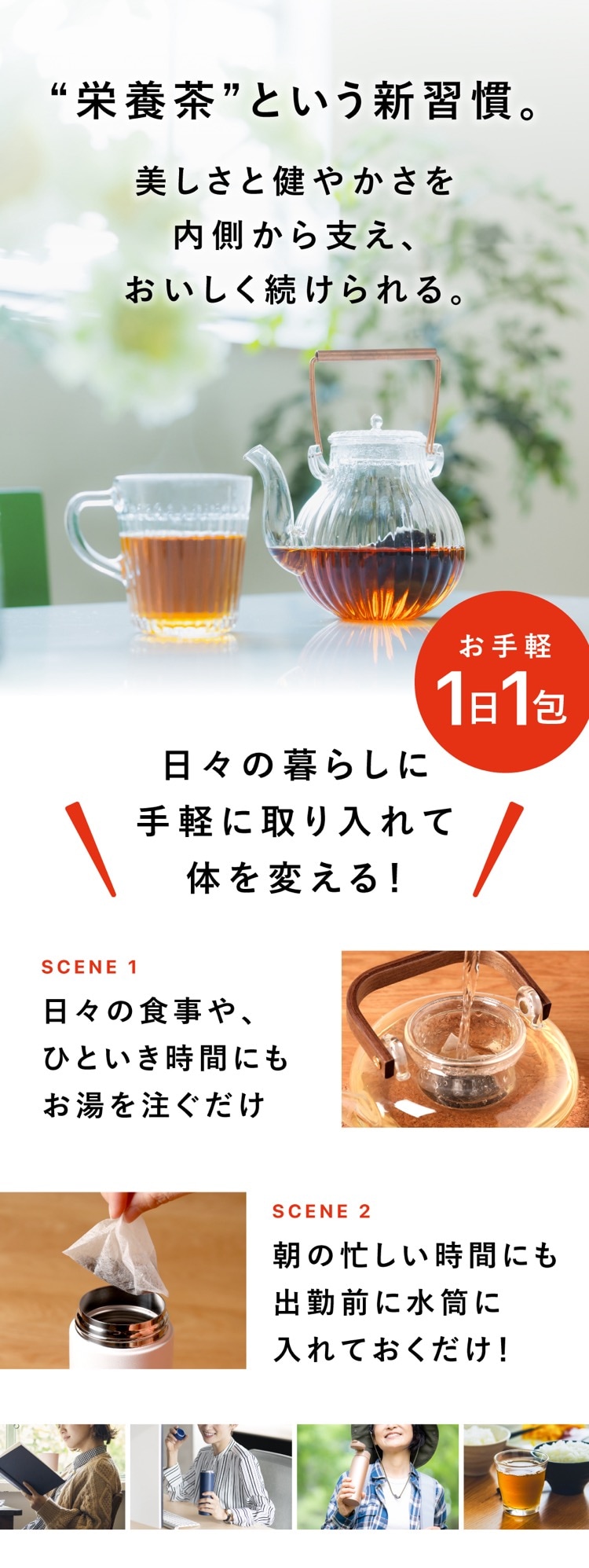 1ティーバッグを1リットルの水に入れ、沸騰後5分間煮出してからお飲みください。