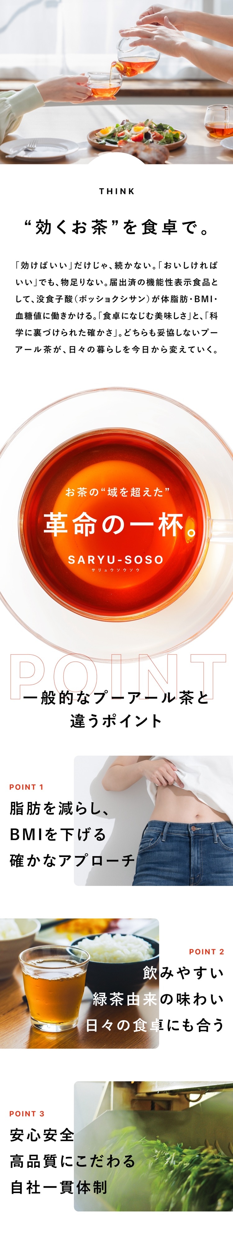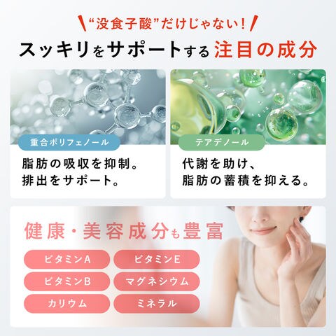 肥満気味の方の体重や内臓脂肪を減らし、高めのBMIを低下させる有効成分(プーアール茶由来没食子酸)が豊富に含まれています。