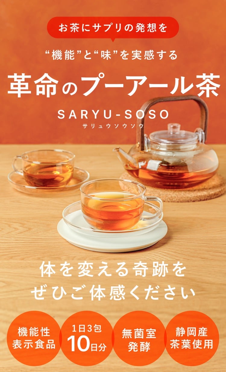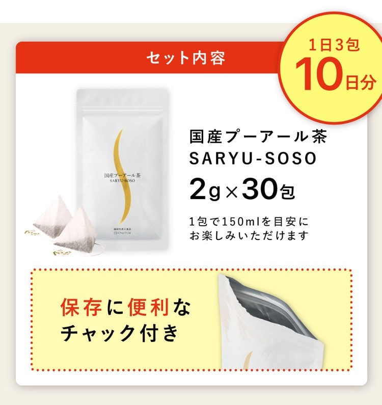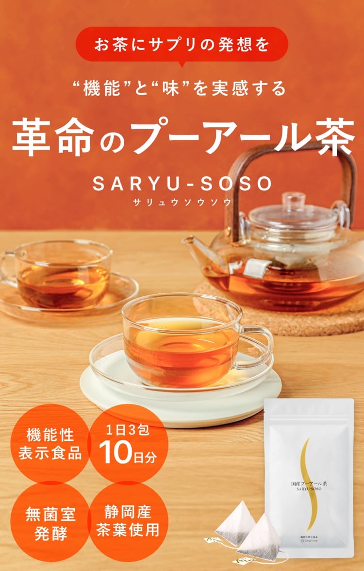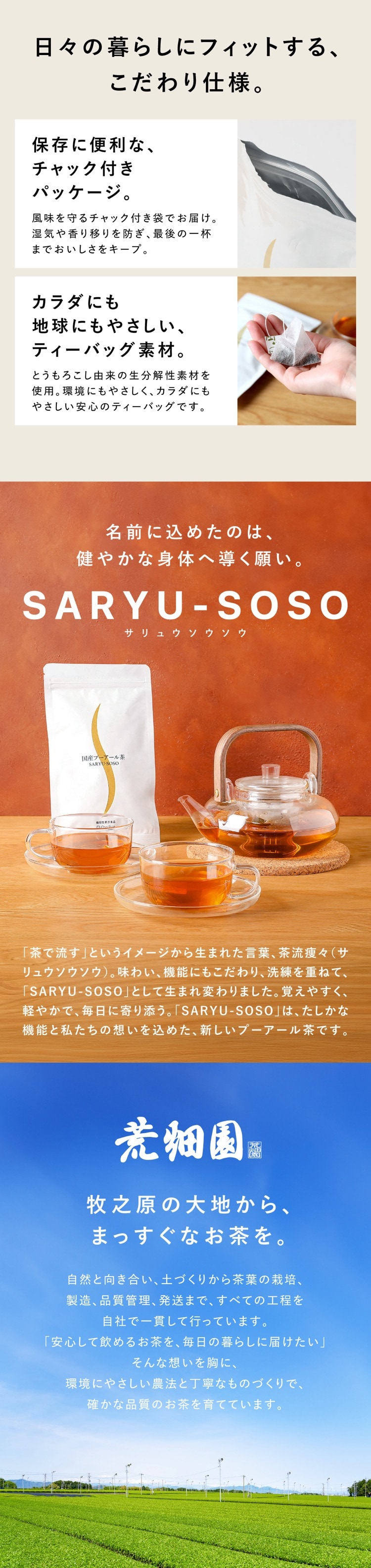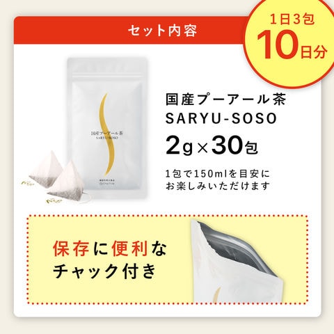 【通常2,006円→大特価】ダイエット茶 健康茶 プーアル茶 ティーバッグ 機能性表示食品 国産プーアール茶 SARYU-SOSO 2g×30包入