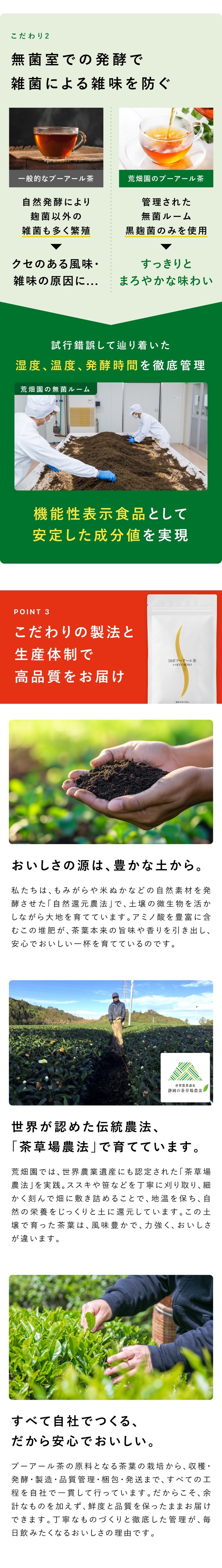 ●届出表示:プーアール茶由来没食子酸には、肥満気味の方の内臓脂肪、体重、およびBMIを減らす機能が報告されています。