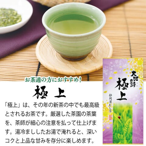 その年のすべて(芽合い、香り、味、水色)において最高級品とされるお茶が「極上」と呼ばれます。厳選した茶園で一芽一芽、丁寧に摘み取り茶師が細心の注意を払って揉みあげました。