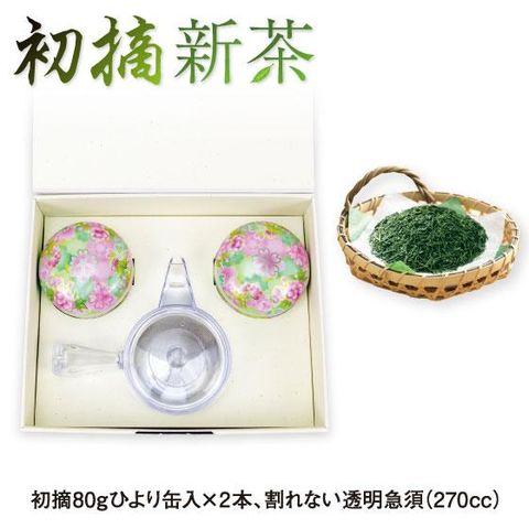 名称:新茶初摘80gひより缶入×2本、割れない透明急須箱入