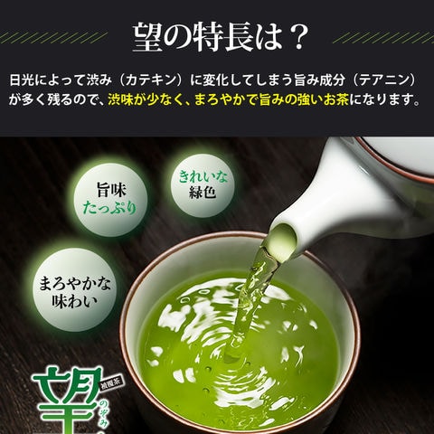 旨み成分の「テアニン」が多いため、渋味が少なく、まろやかで旨みの強いお茶です。