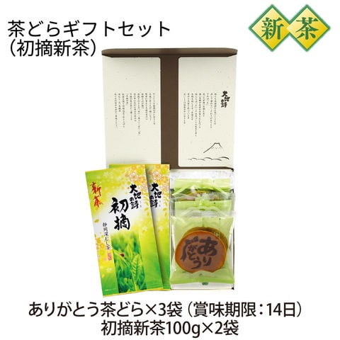 内容量:【新茶 初摘】100g×2袋、【ありがとう茶どら】×3個
