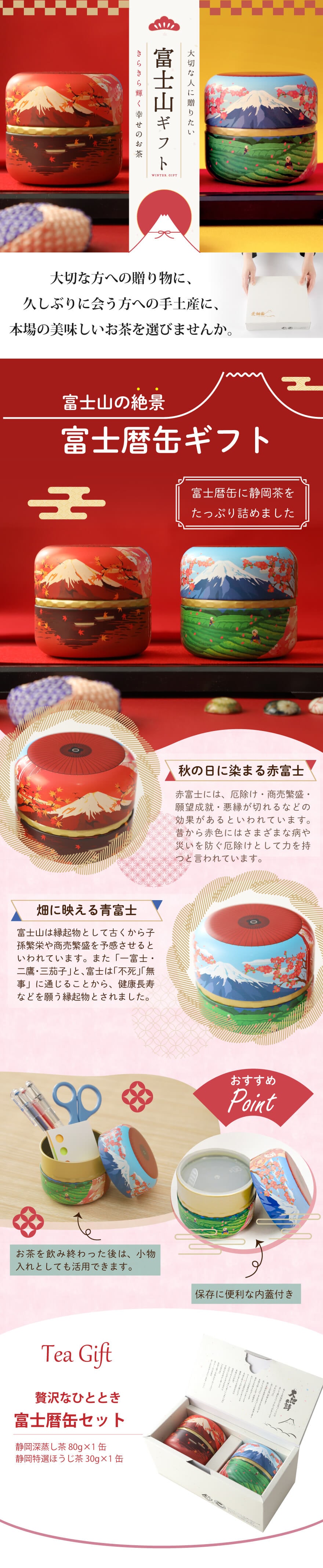 お歳暮 ギフト プレゼント お茶 緑茶 茶葉 富士暦缶2本箱入 (静岡緑茶&ほうじ茶)