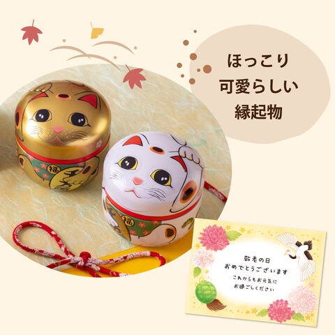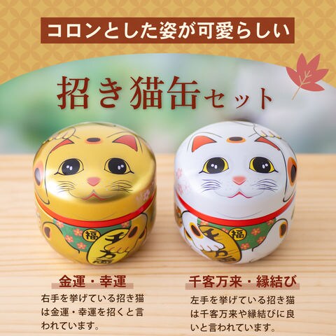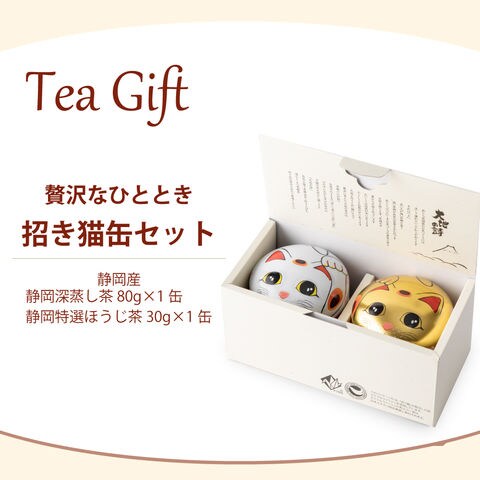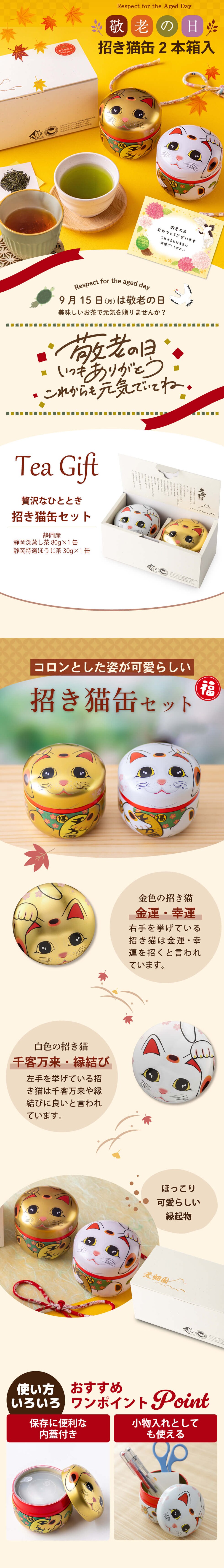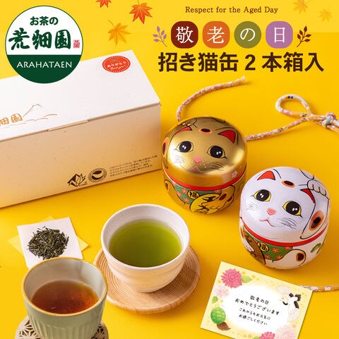 敬老の日 ギフト お茶 緑茶 プレゼント 静岡茶 招き猫缶2本箱入 (静岡緑茶&ほうじ茶) ※9/9頃から発送開始