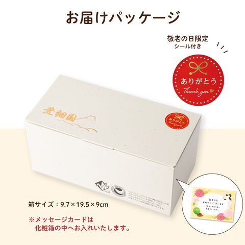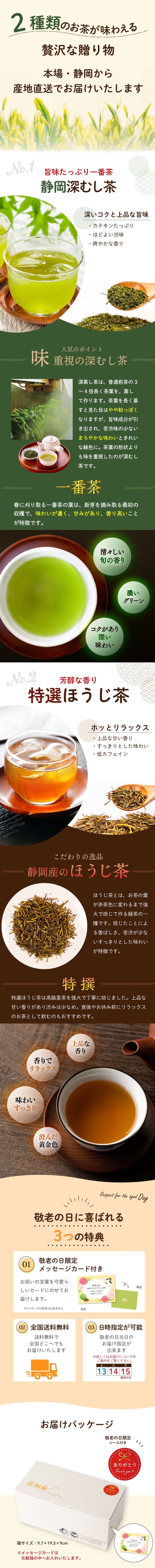 【内容量】静岡深むし茶80g×1缶、特選ほうじ茶30g×1缶、敬老の日メッセージカード×1枚