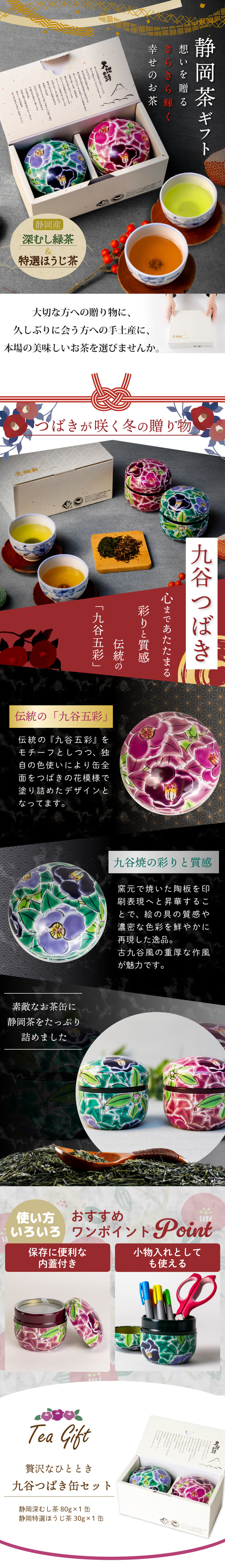 お歳暮 ギフト お茶 緑茶 プレゼント 静岡茶 九谷つばき缶2本箱入 (静岡緑茶&ほうじ茶)