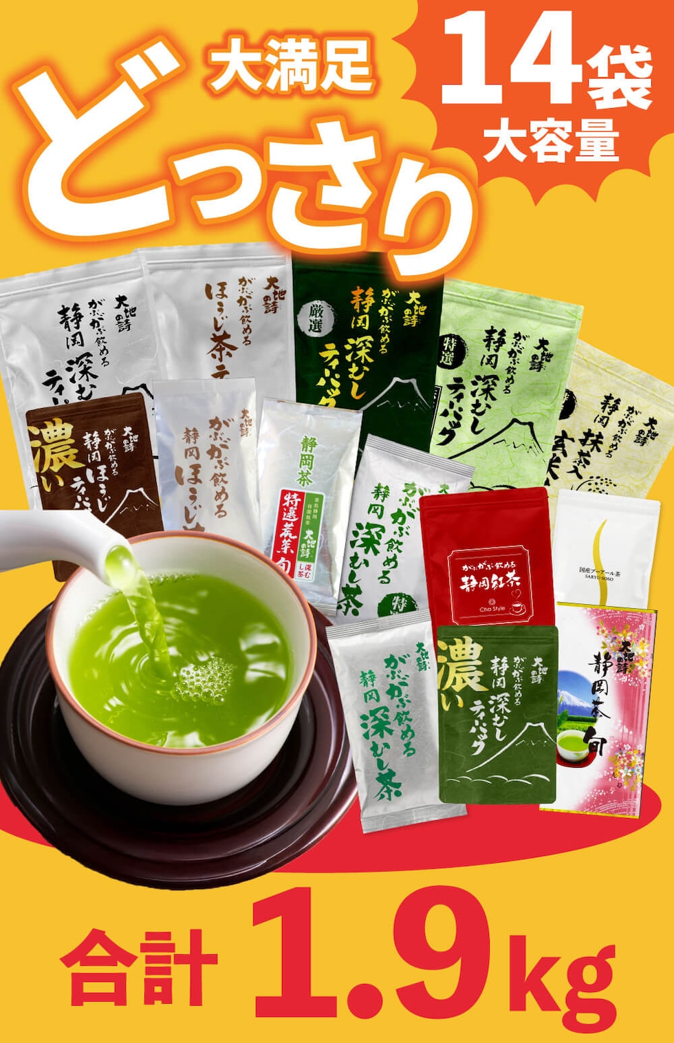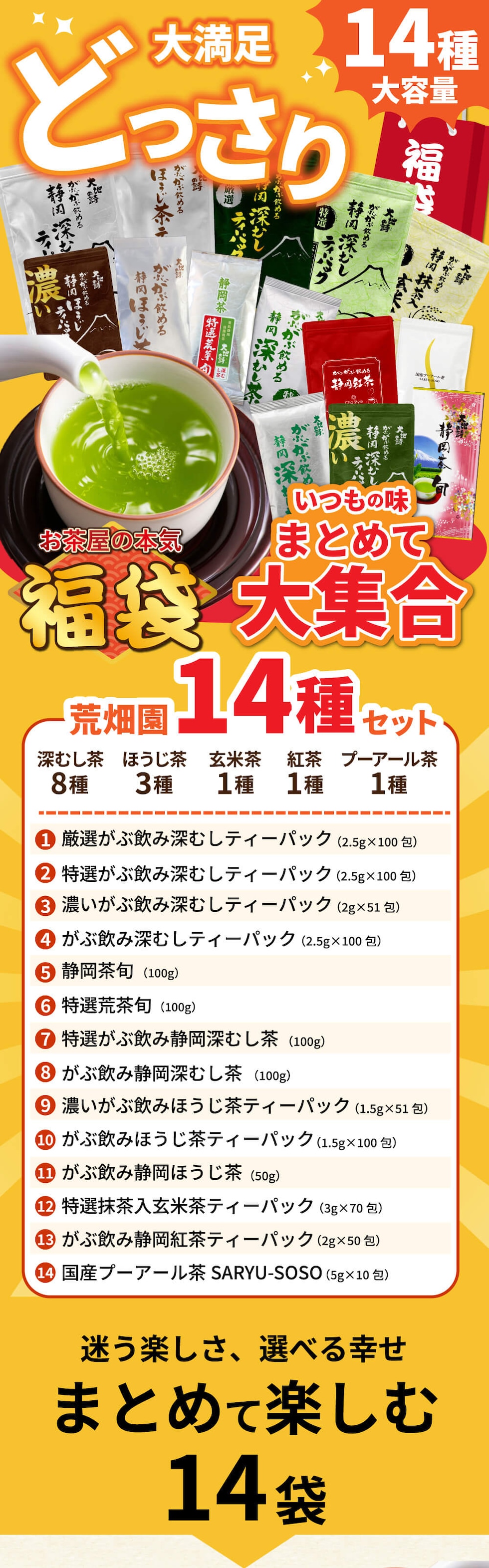 【通常24,791円→超大特価】福袋 お茶 緑茶 茶葉 深蒸し茶 静岡茶 お茶の葉 静岡茶の詰め合わせ福袋 大入り福袋14種セット