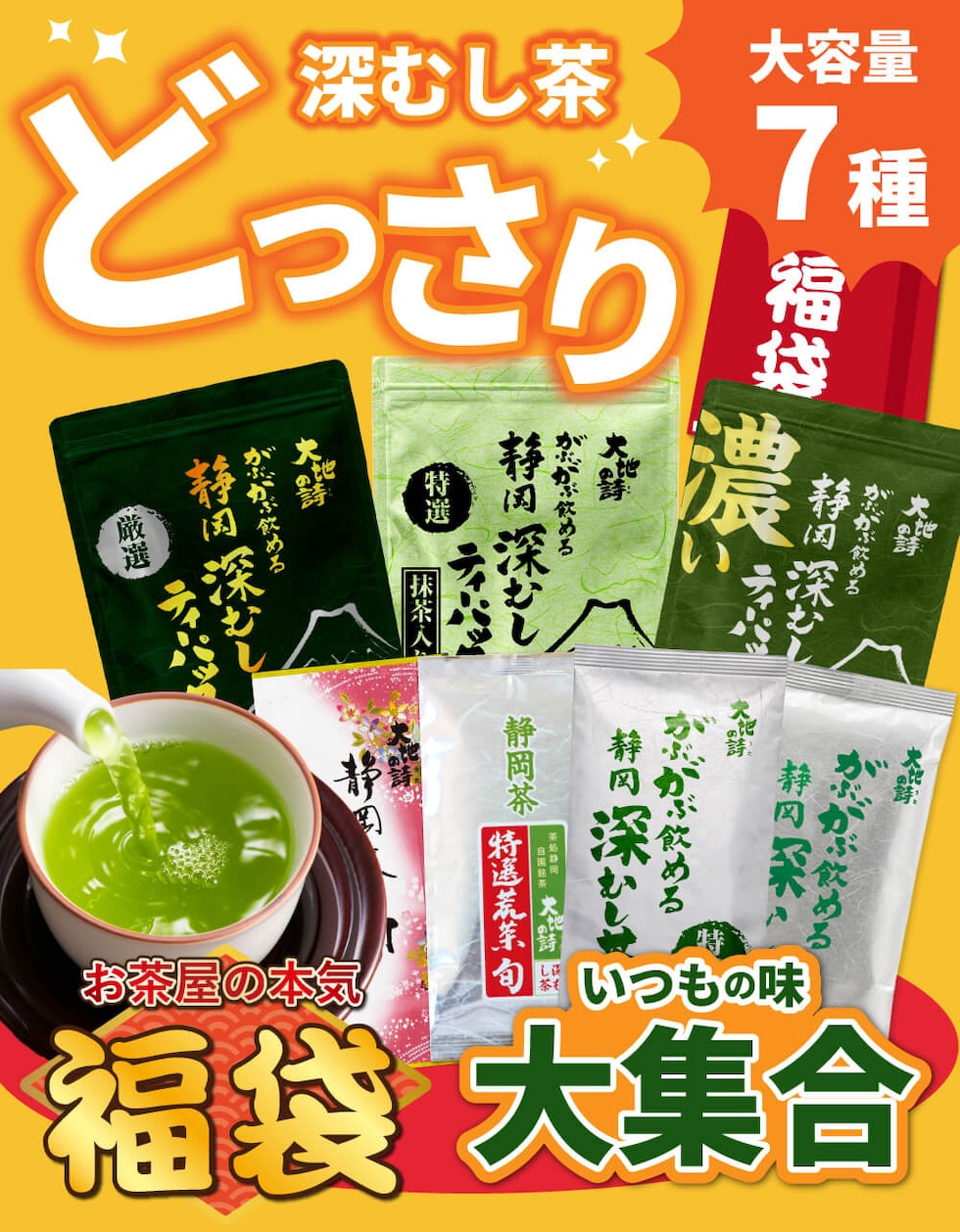 【通常13,579円→超大特価】福袋 お茶 緑茶 茶葉 深蒸し茶 静岡茶 お茶の葉 静岡茶の詰め合わせ福袋 大入り福袋7種セット