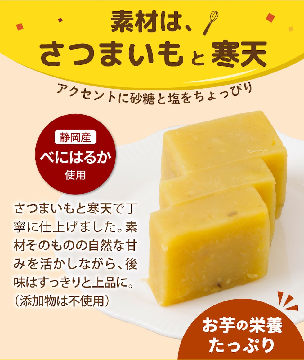 原材料名:さつまいも(国産)、寒天、砂糖、塩
