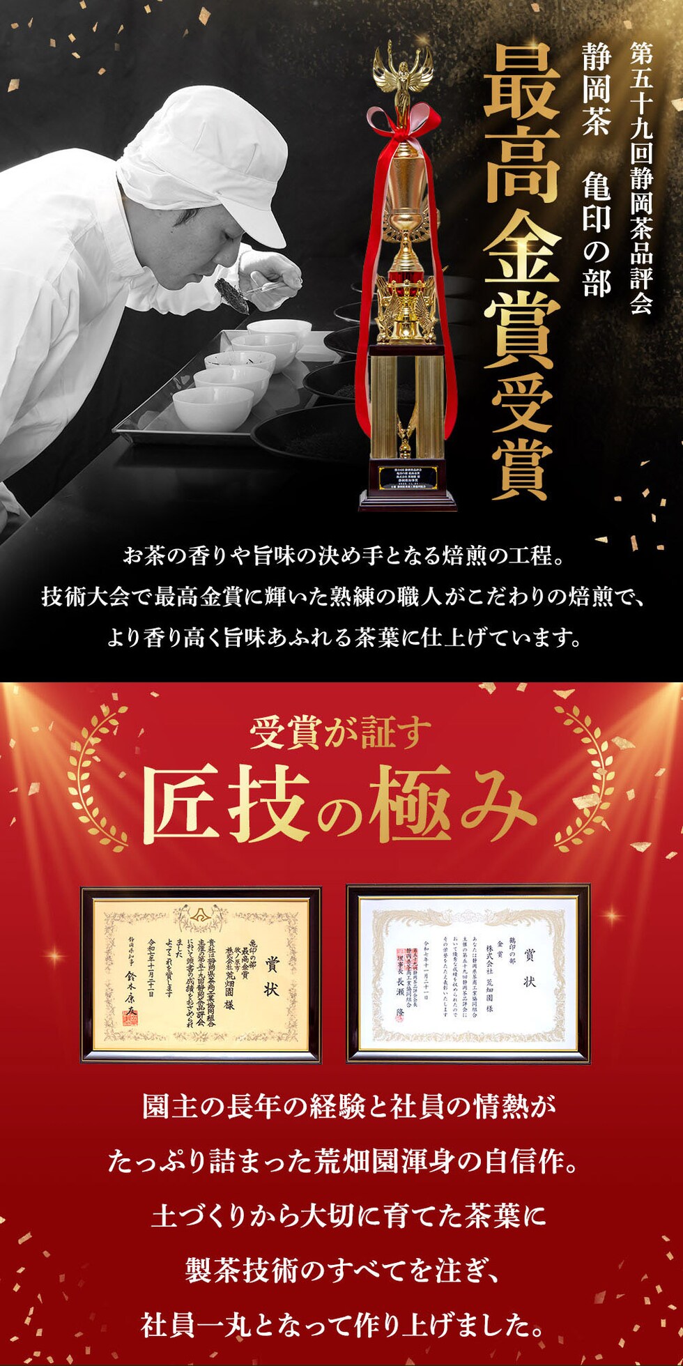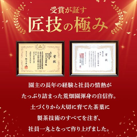 本茶・茎茶・芽茶・粉茶のすべてを含み、奥行きのある旨みと独特の水色、まろやかでお茶本来の味わいを堪能できます。