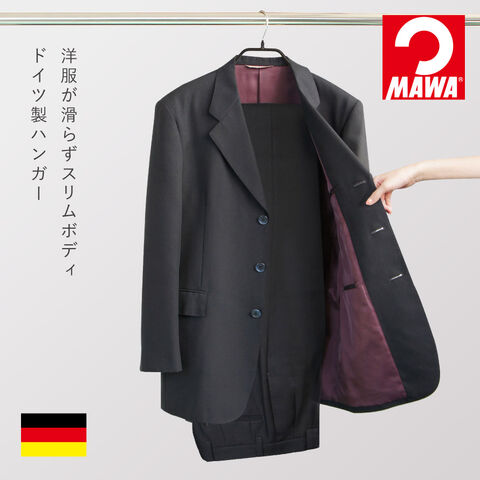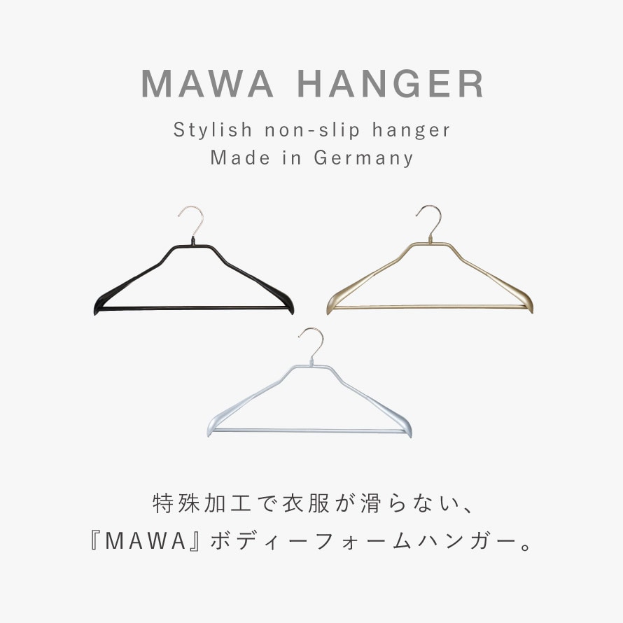 洋服がすべらずスリムなボディで、洋服を綺麗に保存できるドイツ製ハンガー「MAWA」。