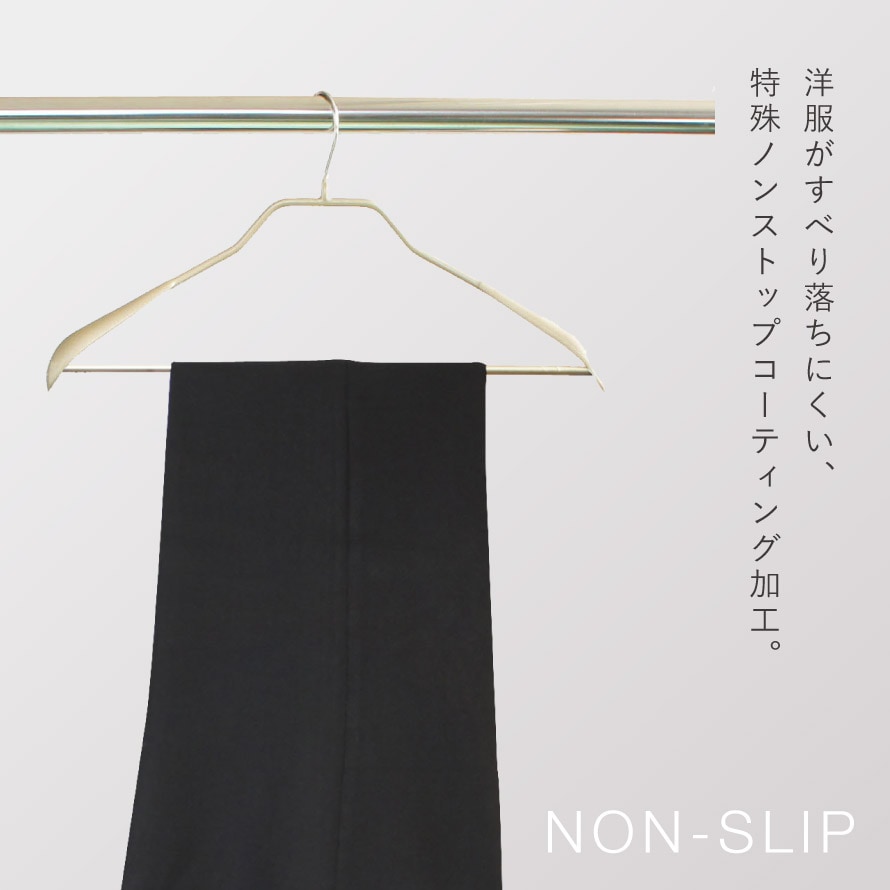 洋服がすべり落ちにくい、特殊ノンストップコーティング加工。柔らかなカバーで、衣類に優しくずり落ちを防ぎます。