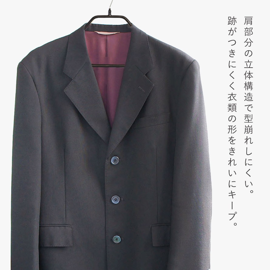 肩部分の立体構造で型崩れしにくい。跡がつきにくく衣類の形をきれいに保ちます。