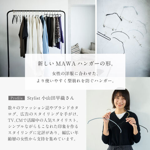TV、雑誌で活躍中の人気スタイリスト小山田早織さんと、歴史あるハンガーメーカー「MAWA」のコラボハンガー。