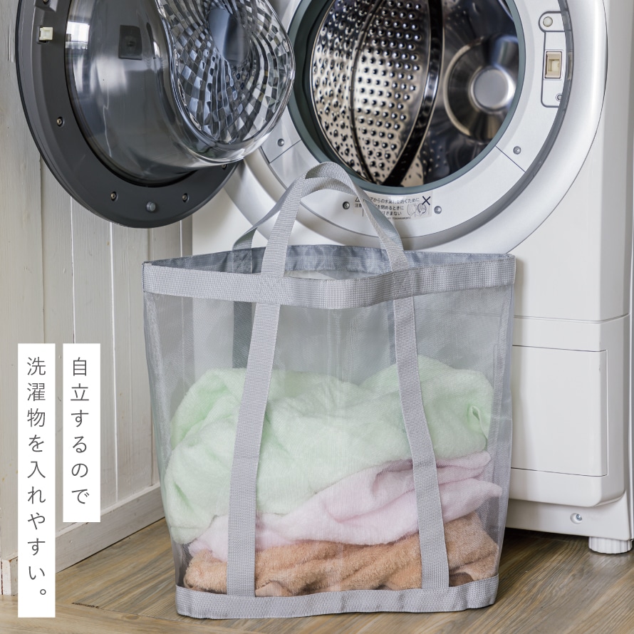 洗濯かご 折りたたみ メッシュ ランドリーバッグ 大容量 メッシュ 折りたたみ 自立 洗濯カゴ おしゃれ 持ち運び スリム コンパクト 洗濯物入れ 脱衣カゴ さらっとメッシュランドリーバッグ ランドリーバスケット グレー 折り畳み洗濯かご