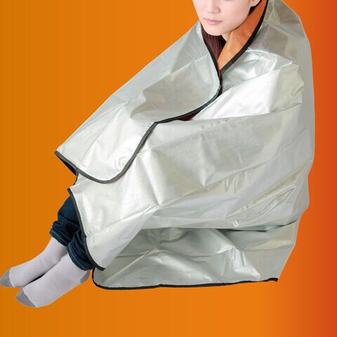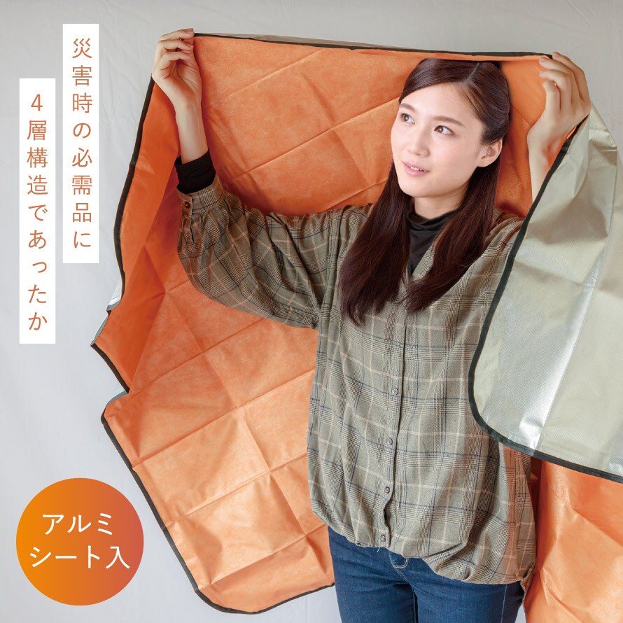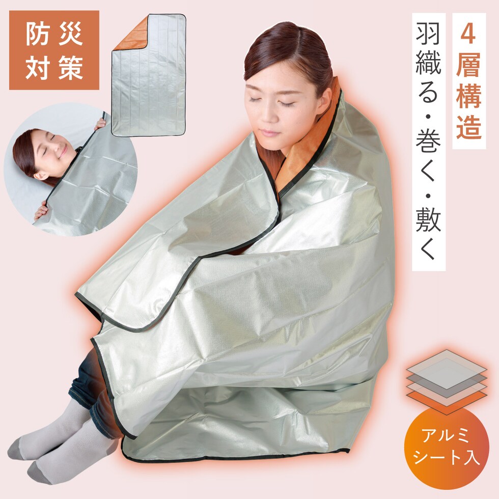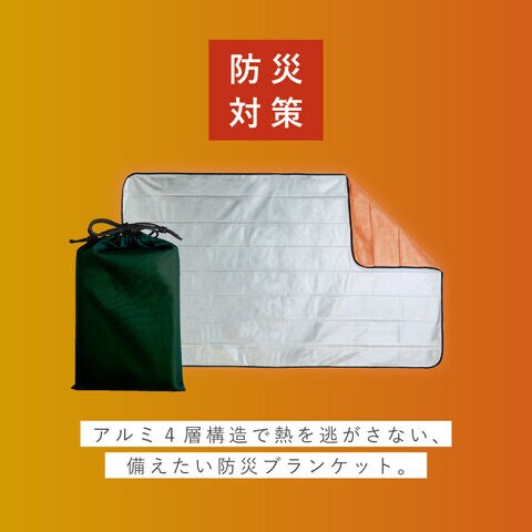 アルミ4層構造で熱を逃がさない、防災ブランケット。