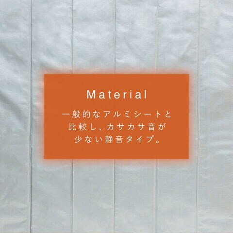 一般的なアルミシートと比較し、カサカサ音が少ない静音タイプ。