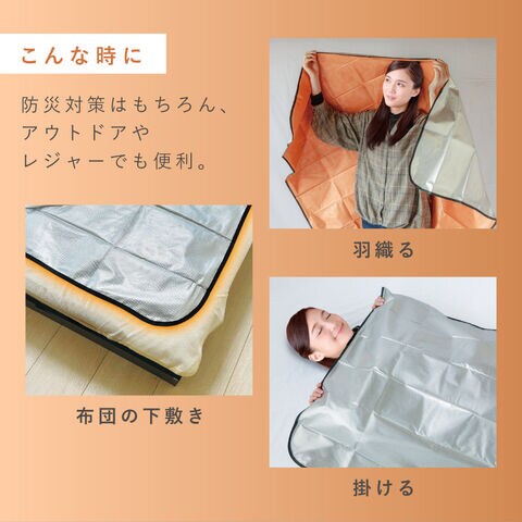 防災対策にもおすすめのブランケットです。掛ける、羽織る、巻く、敷く、など色々な用途に。